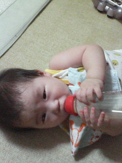 いらないときは、ちょっとだけ飲んで、哺乳瓶をぶち投げます。